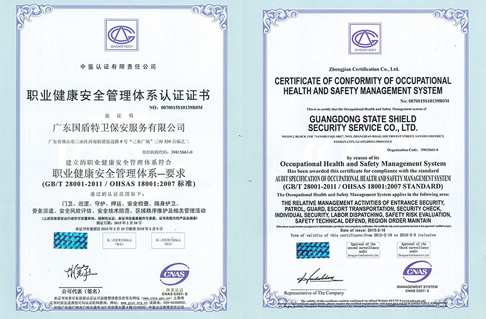 職業(yè)健康安全管理體系認證證書